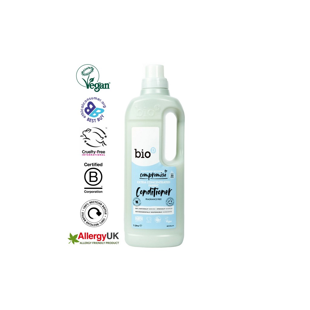 Bio-D Fabric Conditioner 1L provides naturally soft and fresh laundry without harsh chemicals. Its plant-based, biodegradable ingredients reduce static cling and make ironing easier, while being gentle on sensitive skin. Free from phosphates, enzymes, and optical brighteners, this hypoallergenic conditioner ensures clean, comfortable clothes that are kind to both skin and planet. It’s perfect for all fabric types and safe for use with septic tanks. The recyclable 1L bottle makes it ideal for smaller households wanting eco-friendly laundry care without compromise. Produced in the UK under vegan and cruelty-free standards, Bio-D’s formula brings softness and sustainability to every wash.