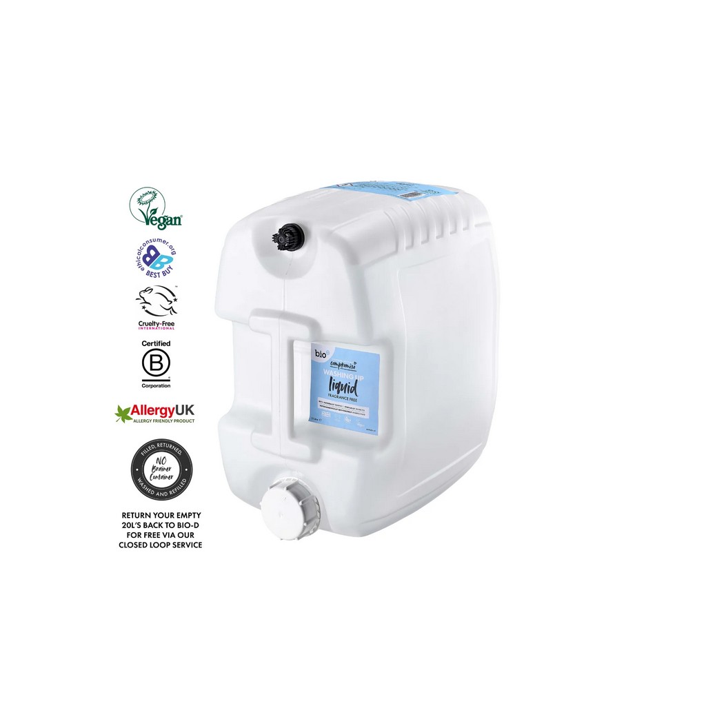 Bio-D Fragrance Free Washing Up Liquid 20 L is the perfect choice for those seeking powerful cleaning without perfume or colour. Its biodegradable, plant-based formula removes grease and grime efficiently, leaving dishes sparkling clean while being kind to sensitive skin. The 20 L refill container offers excellent value and supports refill systems, helping reduce single-use plastic waste. Ideal for commercial kitchens, eco stores, and conscious households, it provides long-lasting cleaning power while supporting Bio-D’s sustainable ethos. Free from synthetic fragrances, phosphates, and preservatives, this liquid is vegan, cruelty-free, and suitable for septic tanks – a responsible cleaning solution for a cleaner, greener kitchen.