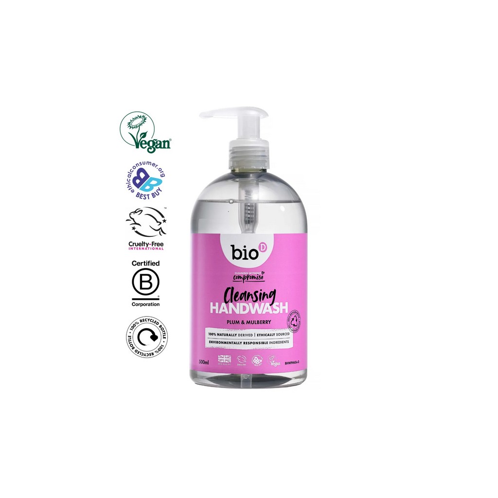Bio-D Plum and Mulberry Hand Wash 500 ml combines luxurious scent with natural care. Its biodegradable formula cleans hands effectively while maintaining skin softness, leaving behind a sweet and comforting fragrance of ripe plum and mulberry. Free from parabens, SLS, and synthetic dyes, this plant-based hand wash is suitable for all skin types, including sensitive skin. The rich lather rinses easily, leaving hands feeling smooth and refreshed. Packaged in a 100% recycled bottle, vegan and cruelty-free, this hand wash reflects Bio-D’s values of sustainability and conscious living – a perfect balance of indulgence and responsibility.
