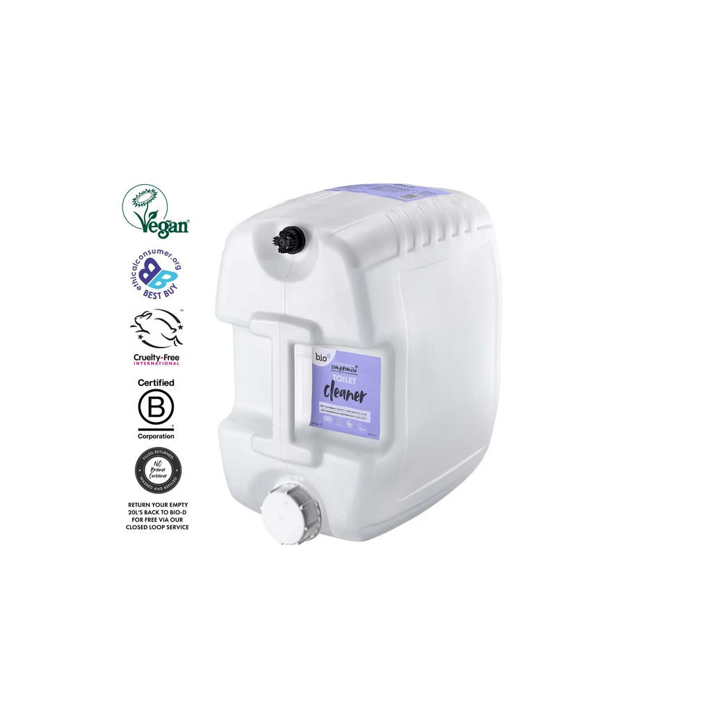 Bio-D Toilet Cleaner 20 L offers a sustainable, bulk solution for maintaining hygienic, fresh toilets. Using biodegradable, plant-based ingredients, it removes limescale, stains, and bacteria without harsh acids or bleach. The thick formula clings to surfaces for deep cleaning and deodorising, leaving toilets spotless and hygienic. Free from synthetic dyes, chlorine, and phosphates, it’s safe for septic tanks and aquatic life. The 20 L refill container supports zero-waste practices and reduces single-use packaging, making it ideal for refills and commercial cleaning. Produced in the UK under vegan and cruelty-free certification, Bio-D Toilet Cleaner balances effectiveness with environmental responsibility – perfect for those who want a clean conscience alongside a clean toilet.