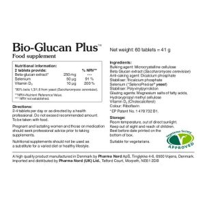 Bio-Glucan Plus is a combination nutritional supplement. Containing 1,3/1,6 beta glucan, vitamin D and Selenium. Vitamin D and Selenium play an important role in supporting immune function. The beta glucan may benefit individuals whose immune system has been weakened through lifestyle, stress or ageing.