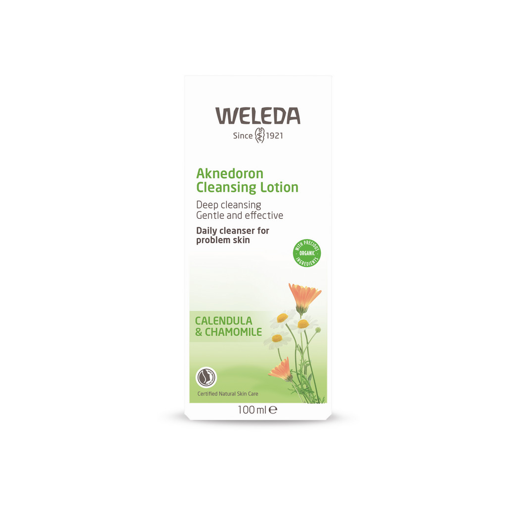 Weleda Aknedoron Cleansing Lotion 100ml is a purifying cleanser formulated for problematic skin. This is an all-natural, gentle cleanser with essential oils and natural extracts. This product contains organic chamomile and biodynamic calendula to soothe inflammation.