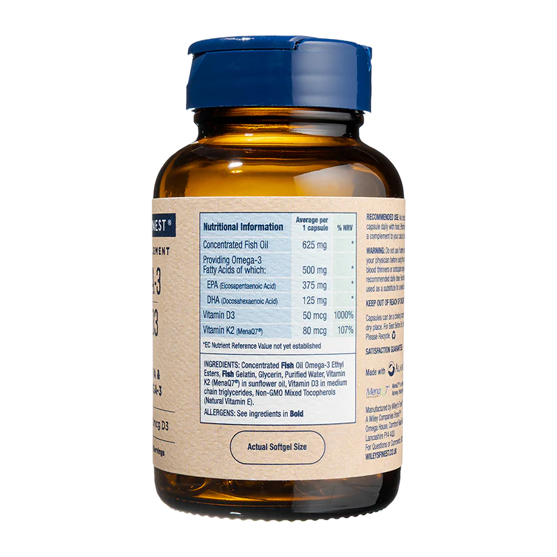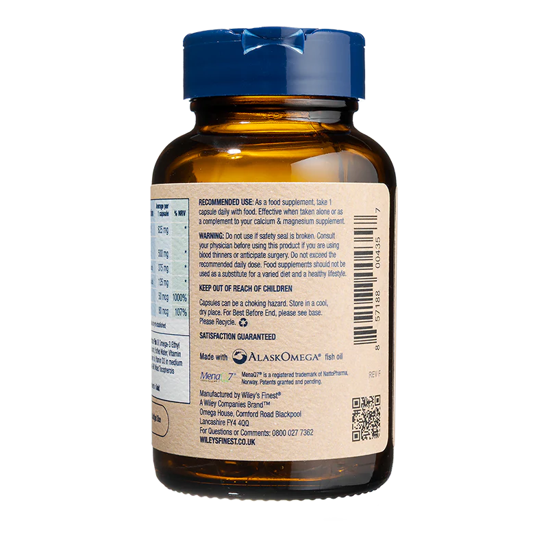 In one small Softgel per day, this unique formula provides your daily need for MenaQ7® Vitamin K2 and Vitamin D3, combined with EPA and DHA Omega-3s. K2 and D3, often missing in today’s diets, are most effective when paired with heart-healthy fats such as Omega-3s from Fish Oil. These nutrients direct your calcium to work for you by strengthening bones and opening arteries. Discover your missing link!