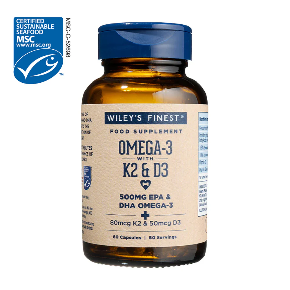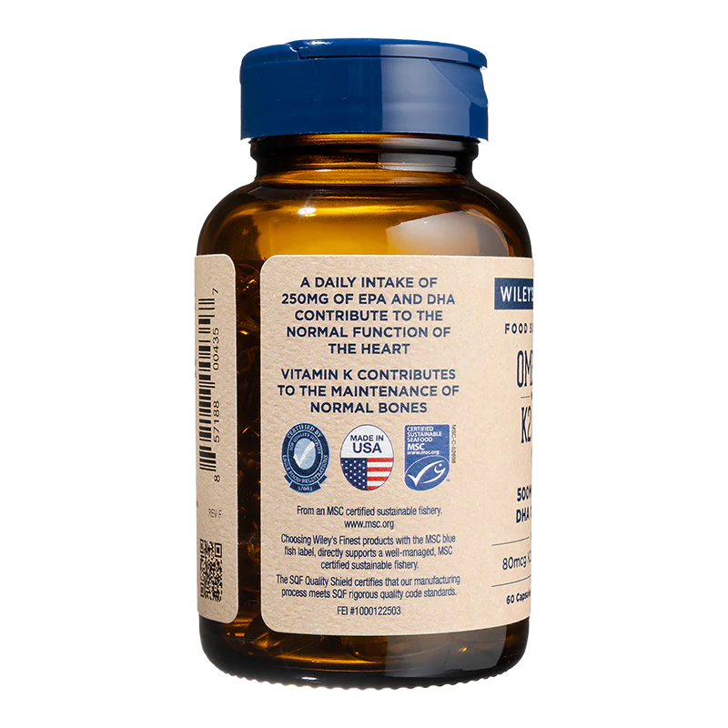 Vitamin K2 MenaQ7® (MK-7), Vitamin D3, and EPA + DHA Omega-3s from Fish Oil work together to support heart and circulatory health*